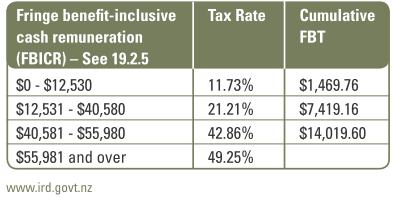 Under this option, you perform a separate calculation for each employee who has received attributed benefits and the FBT rate depends on the fringe benefit-inclusive cash remuneration (FBICR) received by each employee (See 19.2.5).
