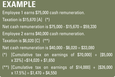 Step 2: Calculate the net cash remuneration of each employee: To do this you need to deduct taxation using the current individual tax rates. Rates are based on effective marginal rates (See 2.1.1) as follows: