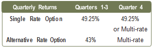 elect to pay FBT at either 42.86% or 49.25% for the first three quarters, and in the final quarter pay FBT applying the full alternate rate option; or