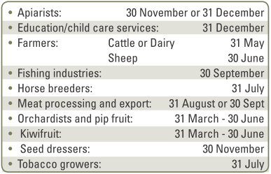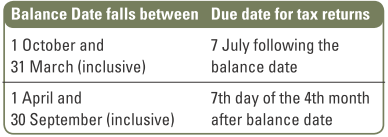Tax returns must be filed by due date. These depend on your balance date as follows: